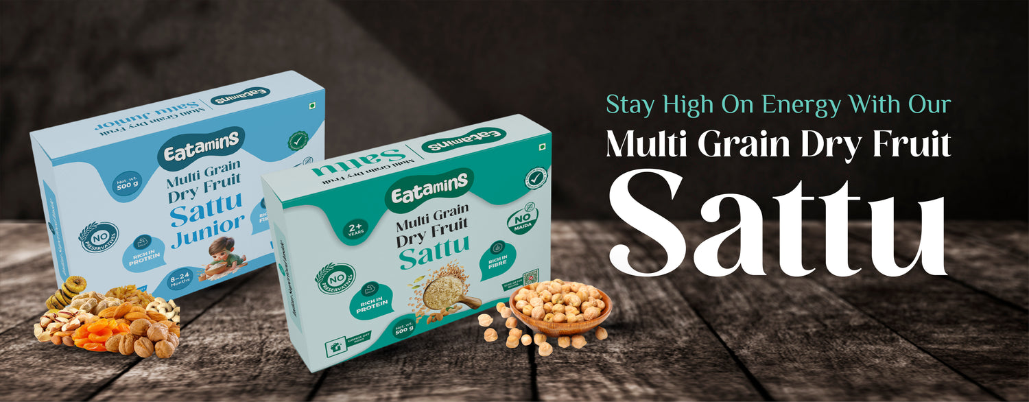 - Sattu Products: Our Eatamins Sattu range serves as a healthy option for different age groups, offering a blend of grains rich in protein. Perfect for Toddlers and adults. Can make verities of recipes. Check out Eatamins YouTube channel for more easy-to-follow recipes!